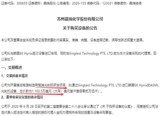 如上文提到,阿斯麥的4臺EUV設(shè)備價值5.95億歐元,按當(dāng)前匯率折算成人民幣,就是每一臺光刻機價值11.7億元人民幣。就在前不久,在A股上市的【晶瑞股份(300655)、股吧】就曾公告以1102.5萬美元(約合0.74億元人民幣)進(jìn)口韓國SK Hynix的ASML光刻機設(shè)備。