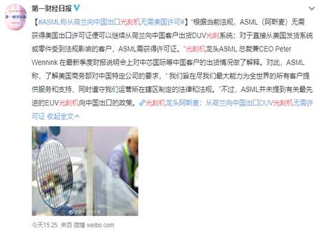 10月15日消息,據(jù)國外媒體報道,光刻機巨頭荷蘭阿斯麥(ASML)首席財務(wù)官近日在財報視頻會議上表示,向中國客戶出口DUV光刻機已經(jīng)無需申請出口許可證。