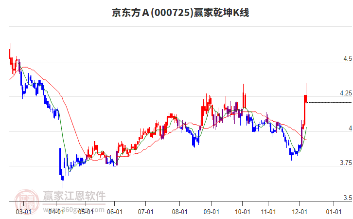 000725京東方A低開(kāi)收下影十字星,黃金時(shí)間線顯示近期時(shí)間窗11月26日