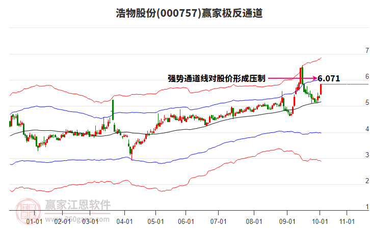 浩物股份(000757)根據贏家江恩極反通道趨勢工具展示,上方壓力位5.5246,下方支撐位4.1316。浩物股份(000757)處于贏家江恩多頭主線形態(tài),10月30日發(fā)出江恩筑頂信號后,經過15日,