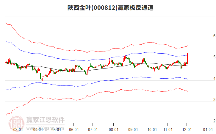 周三000812陜西金葉最高價(jià)5.71挑戰(zhàn)了贏家極反通道工具上方紅色外軌線,受到上方紅色外軌線強(qiáng)力壓制,最終收盤停留在在上方紅色外軌線與藍(lán)色外軌線上方的超強(qiáng)通道區(qū)域。000812陜西金葉近10個(gè)交易日