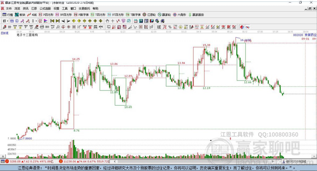 京新藥業(yè)處于贏家江恩多頭中期回調(diào)形態(tài),今日雖重心下移,但短期多頭趨勢(shì)未改變,6月20日發(fā)出中期江恩筑底信號(hào)后,經(jīng)過178日,今日形成中期筑頂信號(hào),若持續(xù)下跌,觸發(fā)長期筑頂信號(hào),京新藥業(yè)將轉(zhuǎn)為空頭主線。