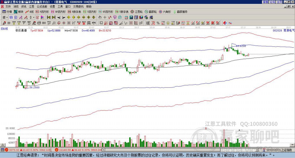 今日思源電氣002028最高價(jià)138.98上穿了贏家極反通道工具上方紅色外軌線,受到上方紅色外軌線強(qiáng)力壓制,最終收盤停留在在上方紅色外軌線與藍(lán)色外軌線上方的超強(qiáng)通道區(qū)域。思源電氣002028近10個(gè)交