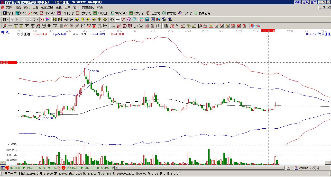 002172澳洋健康根據(jù)贏家江恩極反通道趨勢工具展示,上方壓力位4.3039,下方支撐位3.5969。002172澳洋健康處于贏家江恩多頭中期回調(diào)形態(tài),今日重心持續(xù)下移,短期延續(xù)下跌趨勢,6月3日發(fā)出