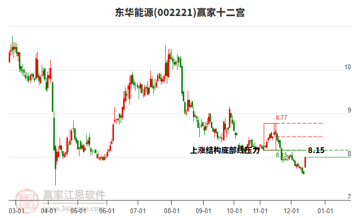 002221東華能源根據(jù)贏家江恩極反通道趨勢(shì)工具展示,上方壓力位8.5407,下方支撐位7.5481。002221東華能源處于贏家江恩空頭主線形態(tài),11月3日發(fā)出江恩筑底信號(hào)后,經(jīng)過(guò)2日,今日形成短期