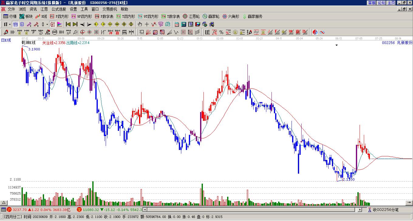 002256兆新股份根據(jù)贏家江恩極反通道趨勢工具展示,上方壓力位3.9828,下方支撐位3.2969。002256兆新股份處于贏家江恩多頭主線形態(tài),9月30日發(fā)出江恩筑頂信號后,經(jīng)過69日,今日再次發(fā)