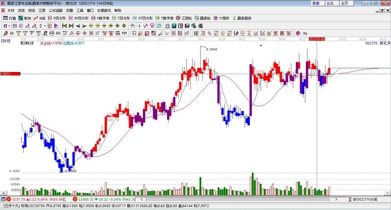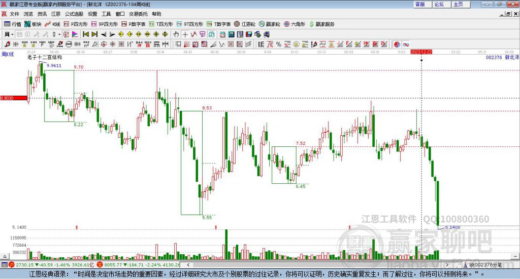 002376新北洋處于贏家江恩多頭中期回調(diào)形態(tài),從12月17日形成底分型后持續(xù)上攻,今日突破前高形成初次江恩筑底信號,中長線均在空頭下跌趨勢中。002376新北洋根據(jù)贏家江恩極反通道趨勢工具展示,上方