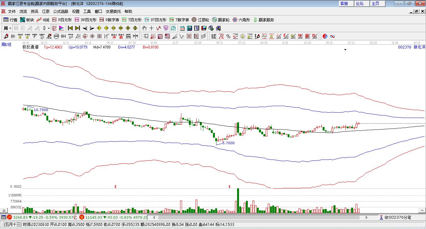新北洋處于贏家江恩多頭中期回調(diào)形態(tài),10月9日發(fā)出江恩筑底信號后,經(jīng)過41日,今日形成短期筑頂信號,短期多頭趨勢已被破壞,中期多頭反彈趨勢延續(xù),但長期處于回調(diào)中。新北洋根據(jù)贏家江恩極反通道趨勢工具展示