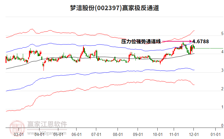 夢(mèng)潔股份(002397)根據(jù)贏家江恩極反通道趨勢(shì)工具展示,上方壓力位4.9974,下方支撐位4.1861。夢(mèng)潔股份(002397)處于贏家江恩多頭主線形態(tài),12月10日發(fā)出江恩筑頂信號(hào)后,經(jīng)過15日,