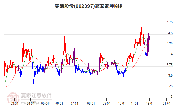 夢(mèng)潔股份(002397)低開收陽線,突破黃金價(jià)格分割工具壓力位4.23元