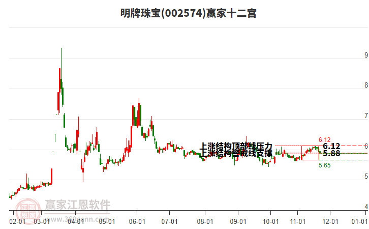 該股12月25日股價(jià)上穿2025年11月20日形成的上漲結(jié)構(gòu)底部線5.65,以上下影小陽線收盤。依據(jù)贏家十二宮多空能量守恒規(guī)則,上漲結(jié)構(gòu)底部線位置是多空能量轉(zhuǎn)換的一個(gè)關(guān)鍵位置。當(dāng)前股價(jià)如能有效突破站穩(wěn)底部線5.65以上,多方主導(dǎo)將挑戰(zhàn)上漲結(jié)構(gòu)警戒線5.88,尋找多空能量平衡位置。若不能有效站穩(wěn),將會(huì)進(jìn)一步下探,打開新的下行空間。