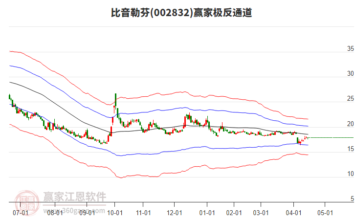 依據(jù)贏家江恩系統(tǒng)趨勢工具極反通道分析判斷比音勒芬002832運行在生命線以下弱勢區(qū)域,根據(jù)規(guī)則該股短線輕倉參與,股價跌至弱勢外軌線后波段再結(jié)合其它工具信號建倉。應用口訣是:生命線上強勢走,生命線下難抬頭;紅黃兩條外軌線,壓力支撐顯勢頭。