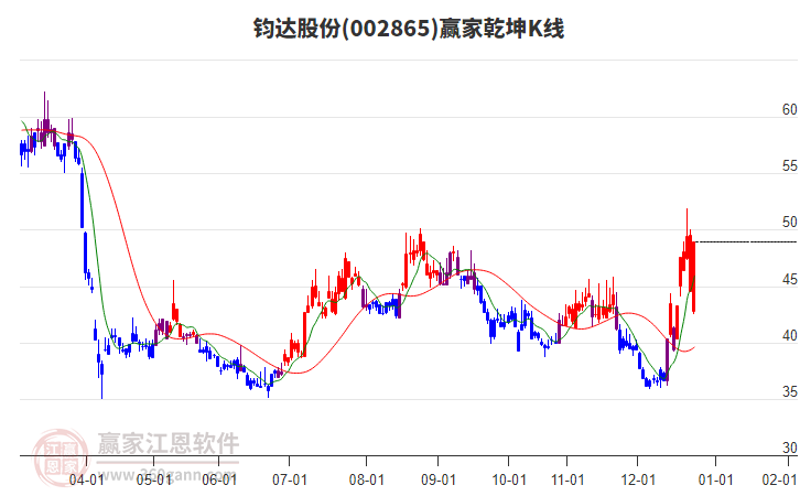 002865鈞達(dá)股份低開收陽線,螺旋歷法時間循環(huán)顯示近期時間窗1月16日