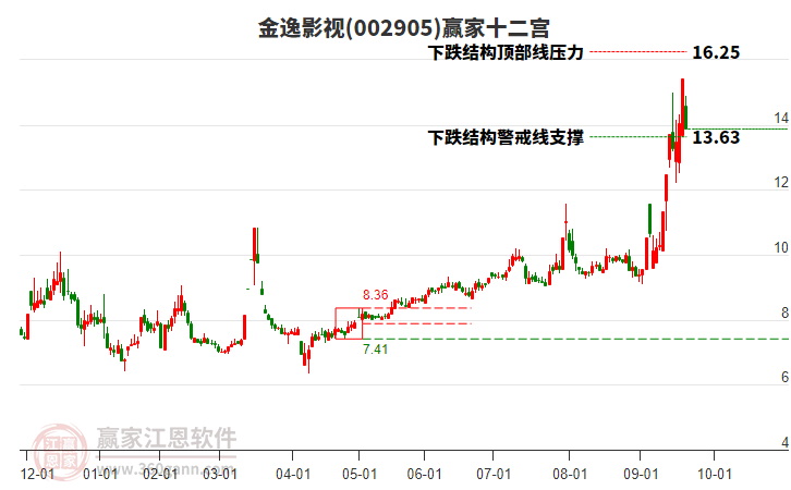 金逸影視(002905)根據(jù)贏家江恩極反通道趨勢工具展示,上方壓力位10.5716,下方支撐位7.3763。金逸影視(002905)處于贏家江恩多頭主線形態(tài),10月17日發(fā)出江恩筑頂信號后,經(jīng)過3日,