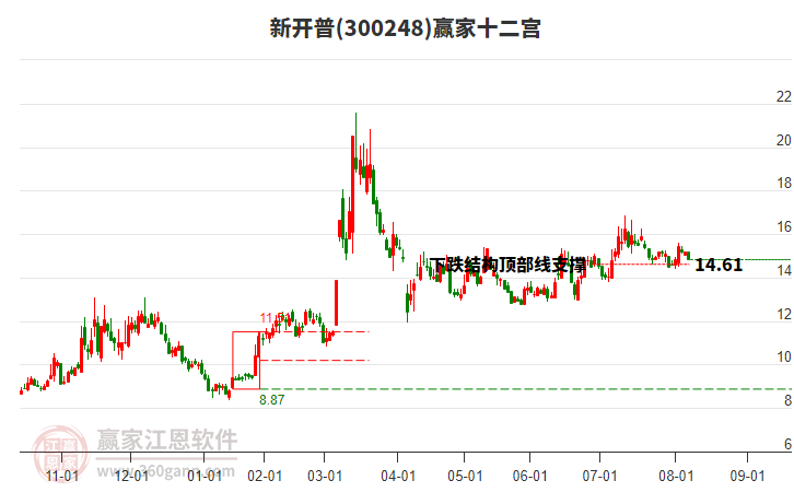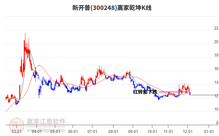 300248新開普在高點(diǎn)14.17后,回調(diào)了1.74元,進(jìn)入紫色多空爭奪期