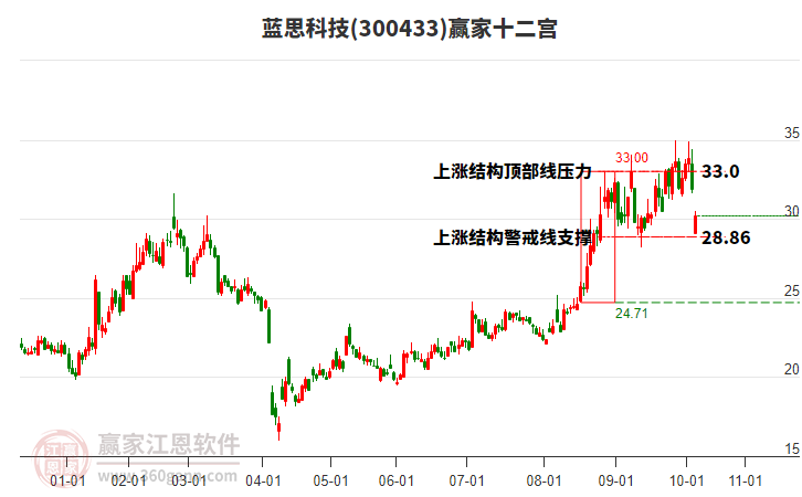 依據(jù)贏家江恩系統(tǒng)趨勢(shì)工具極反通道分析判斷藍(lán)思科技300433運(yùn)行在生命線以上強(qiáng)勢(shì)區(qū)域,根據(jù)規(guī)則該股可短線、波段結(jié)合操作;結(jié)合物極必反的原理通過(guò)分鐘圖做盤(pán)中差價(jià),應(yīng)用口訣是:生命線上強(qiáng)勢(shì)走,生命線下難抬頭;紅黃兩條外軌線,壓力支撐顯勢(shì)頭。
