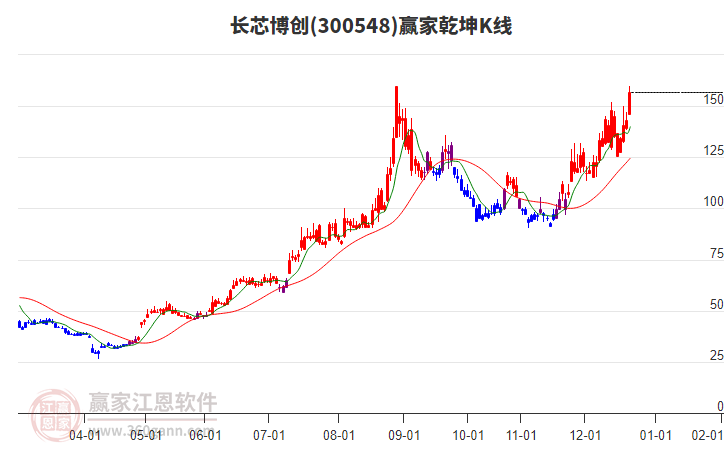 長芯博創(chuàng)300548最高價(jià)挑戰(zhàn)藍(lán)色外軌線 小幅上漲4.85%