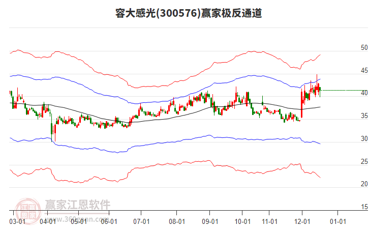 容大感光處于贏家江恩多頭次主線形態(tài),從12月15日形成頂分型后持續(xù)下跌,重心下移,今日跌破前低形成短期初次筑頂信號(hào),短期多頭趨勢(shì)已被破壞,中長(zhǎng)期多頭趨勢(shì)依舊保持。容大感光根據(jù)贏家江恩極反通道趨勢(shì)工具展