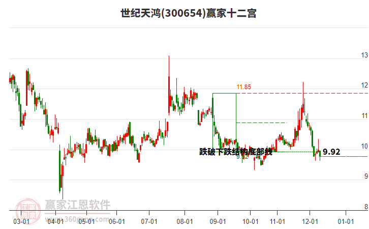 300654世紀(jì)天鴻近期高點(diǎn)12.23持續(xù)下跌,漲幅回落25.18%,到達(dá)黃金價格回調(diào)支撐位工具支撐位9.47元上