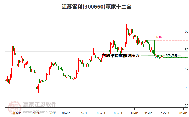 江蘇雷利處于贏家江恩多頭主線形態(tài),從12月17日形成底分型后持續(xù)上攻,今日突破前高形成初次江恩筑底信號(hào),中期多頭趨勢(shì)延續(xù),但長期處于回調(diào)中。江蘇雷利根據(jù)贏家江恩極反通道趨勢(shì)工具展示,上方壓力位56.9