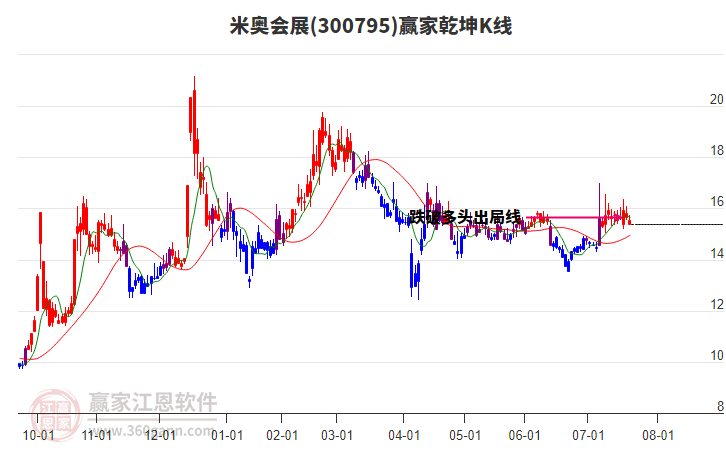 米奧會展處于贏家江恩空頭中期反彈形態(tài),從10月22日形成頂分型后持續(xù)下跌,重心下移,今日跌破前低形成短期初次筑頂信號,短期多頭趨勢已被破壞,中長線均在空頭下跌趨勢中。米奧會展今日跳空低開,截止目前K線
