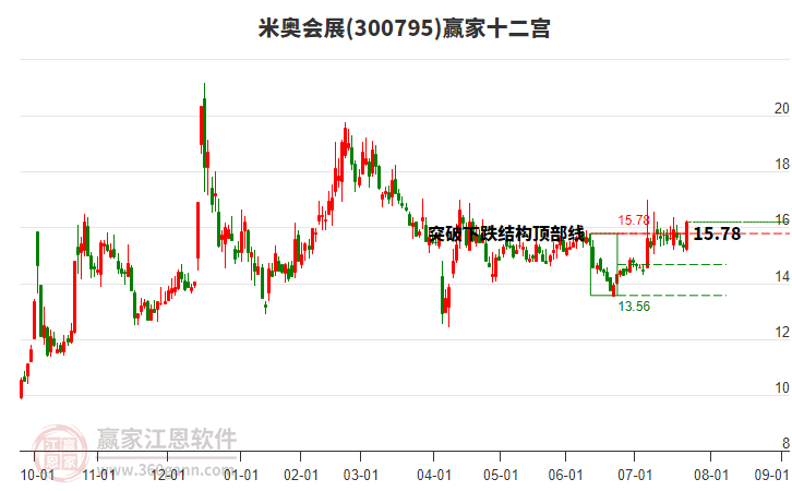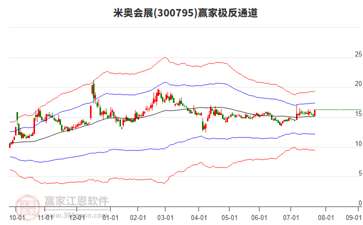 當(dāng)天300795米奧會展最高價15.33上穿了贏家極反通道工具生命線,受到生命線強(qiáng)力壓制,最終收盤停留在在生命線與藍(lán)色下軌線上方的弱勢通道區(qū)域。300795米奧會展近10個交易日漲幅3.18%。