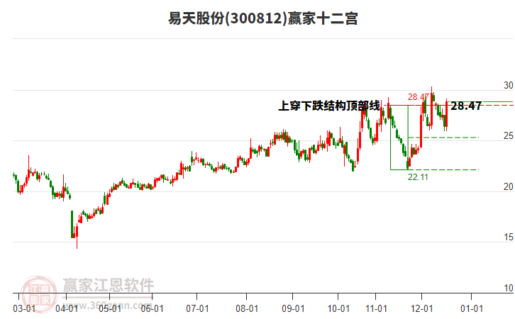12月24日股價(jià)處于2024年1月26日形成的上漲結(jié)構(gòu)底部線30.56下方,今日股價(jià)漲幅11.85%,以穿頭破腳大陽(yáng)線收盤。目前以29.18-26.91價(jià)格區(qū)間進(jìn)行上下震蕩。依據(jù)贏家十二宮多空能量守恒規(guī)則,若多方能量進(jìn)行反攻,突破站穩(wěn)底部線,則有望向上在警戒線位置尋找新的多空能量平衡位。如不能突破站穩(wěn),后市有可能會(huì)再次下探。
