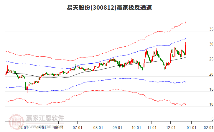 依據(jù)贏家江恩系統(tǒng)趨勢(shì)工具極反通道分析判斷易天股份300812運(yùn)行在生命線以下弱勢(shì)區(qū)域,根據(jù)規(guī)則該股短線輕倉(cāng)參與,股價(jià)跌至弱勢(shì)外軌線后波段再結(jié)合其它工具信號(hào)建倉(cāng)。應(yīng)用口訣是:生命線上強(qiáng)勢(shì)走,生命線下難抬頭;紅黃兩條外軌線,壓力支撐顯勢(shì)頭。