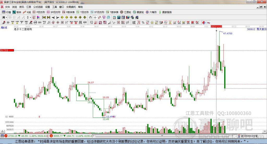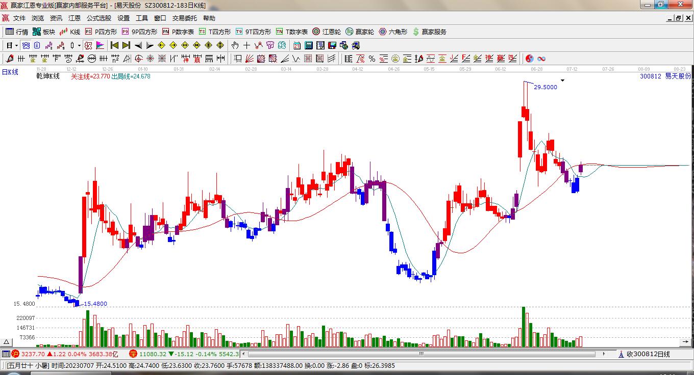 300812易天股份處于贏家江恩空頭中期反彈形態(tài),從11月21日形成底分型后持續(xù)上攻,今日突破前高形成初次江恩筑底信號(hào),中長(zhǎng)期多頭趨勢(shì)依舊保持。易天股份今日跳空高開(kāi),截止目前K線光頭小陽(yáng)線,上漲能量較