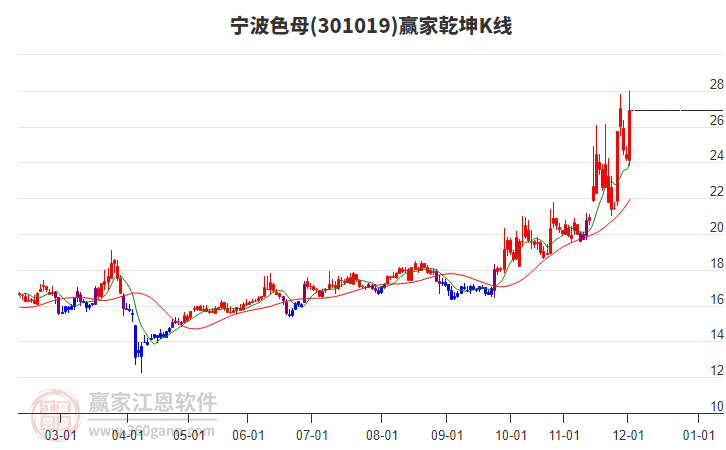 301019寧波色母目前小幅上漲6.06%,走出獨(dú)立行情。寧波色母今日跳空高開,截止目前K線上影小陽(yáng)線,上漲能量較為強(qiáng)勢(shì)。