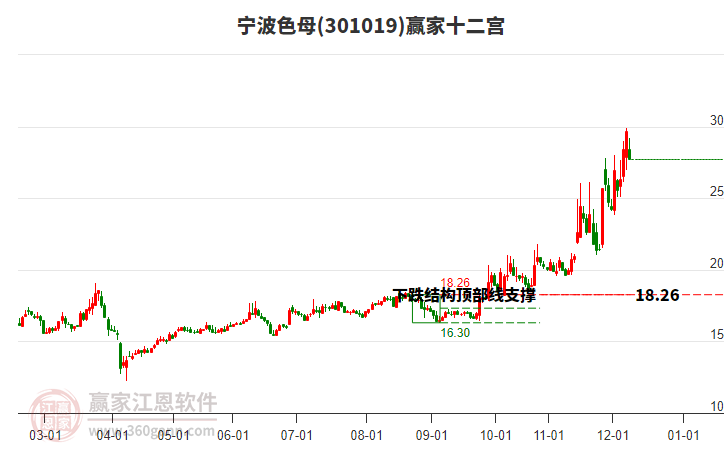 301019寧波色母處于贏家江恩多頭次主線形態(tài),9月16日發(fā)出江恩筑底信號(hào)后,經(jīng)過(guò)55日,今日形成短期筑頂信號(hào),短期多頭趨勢(shì)已被破壞,中長(zhǎng)期多頭趨勢(shì)依舊保持。寧波色母目前K線為光頭小陰線,且當(dāng)前股價(jià)低