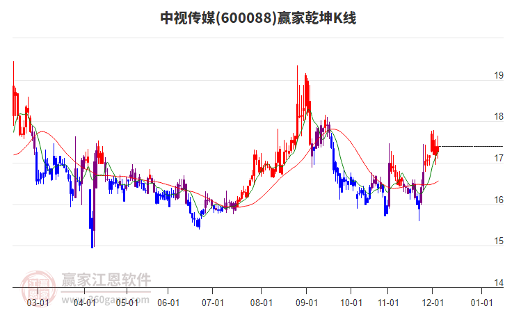 周一中視傳媒最高價17.47上穿了贏家極反通道工具生命線,受到生命線強力壓制,最終收盤停留在在生命線與藍色下軌線上方的弱勢通道區(qū)域。中視傳媒近10個交易日漲幅5.26%。
