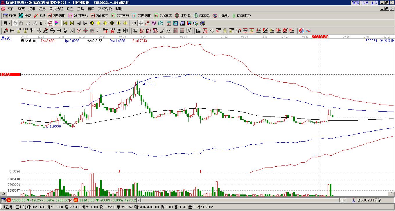 凌鋼股份(600231)目前漲停,所屬板塊股權(quán)轉(zhuǎn)讓、振興東北、雄安新區(qū)、鋼鐵、天然氣短期底分型后持續(xù)上攻。凌鋼股份(600231)截止目前突破極反通道強(qiáng)勢(shì)通道線,根據(jù)贏家江恩極反通道趨勢(shì)工具展示,上方