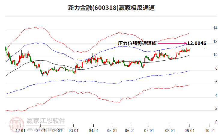 依據(jù)贏家江恩系統(tǒng)趨勢工具極反通道分析判斷新力金融600318運行在生命線以下弱勢區(qū)域,根據(jù)規(guī)則該股短線輕倉參與,股價跌至弱勢外軌線后波段再結(jié)合其它工具信號建倉。應用口訣是:生命線上強勢走,生命線下難抬頭;紅黃兩條外軌線,壓力支撐顯勢頭。