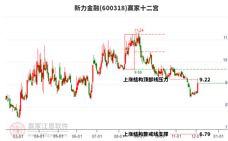 該股自近期高點9.21跌至今日8.96,共下跌0.25元,跌幅2.79%,當前股價處于2024年10月8日形成的上漲結(jié)構(gòu)頂部線與警戒線之間。依據(jù)贏家十二宮多空能量守恒規(guī)則,若多方能量再度聚集發(fā)力上攻,上方平衡位置關(guān)注結(jié)構(gòu)頂部線9.22尋找平衡位;若跌破警戒線,空方繼續(xù)主導,則將進一步下探往結(jié)構(gòu)底部線5.19尋找平衡位。
