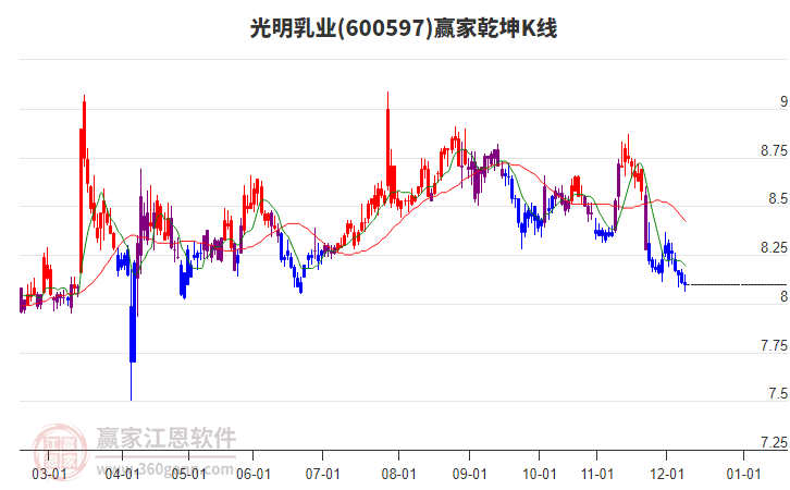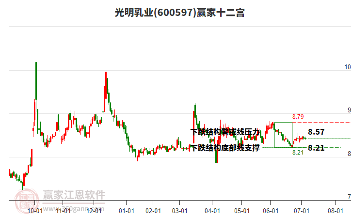 光明乳業(yè)(600597)根據(jù)贏家江恩極反通道趨勢工具展示,上方壓力位8.5498,下方支撐位7.8926。光明乳業(yè)(600597)處于贏家江恩空頭主線形態(tài),今日重心下移,形成短期筑頂信號,從11月14