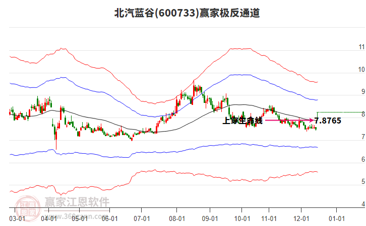600733北汽藍(lán)谷目前漲停,走出獨(dú)立行情。600733北汽藍(lán)谷根據(jù)贏家江恩極反通道趨勢(shì)工具展示,上方壓力位8.7888,下方支撐位7.8765。北汽藍(lán)谷今日跳空高開(kāi)后截止目前K線為漲停,目前股價(jià)高于