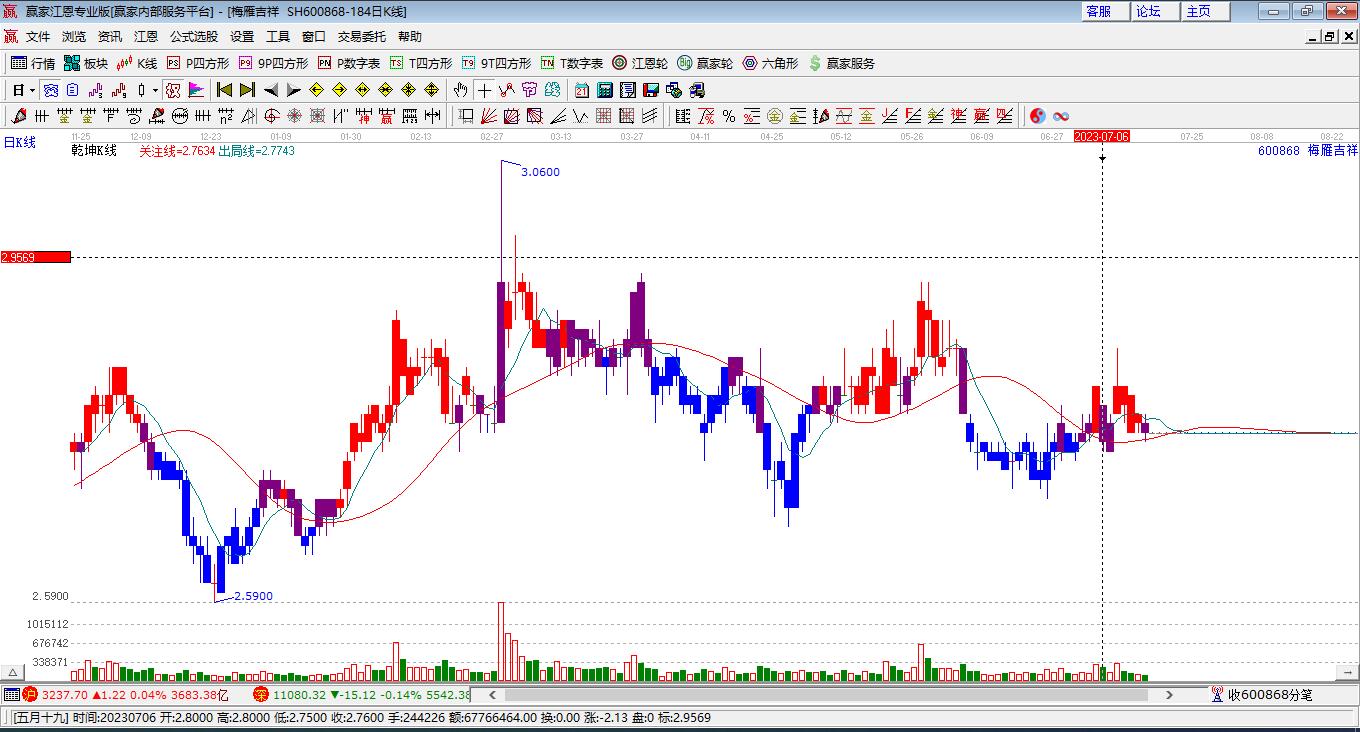 600868梅雁吉祥目前漲停,走出獨(dú)立行情。600868梅雁吉祥根據(jù)贏家江恩極反通道趨勢工具展示,上方壓力位4.5616,下方支撐位3.9303。600868梅雁吉祥處于贏家江恩多頭主線形態(tài),今日再次