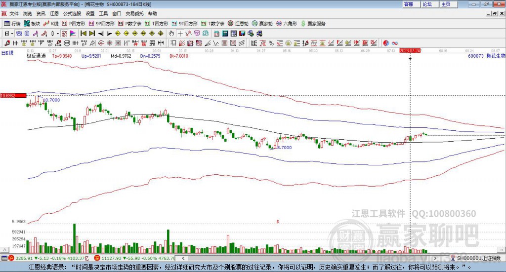 梅花生物處于贏家江恩多頭次主線形態(tài),10月23日發(fā)出江恩筑底信號(hào)后,經(jīng)過(guò)6日,今日形成短期筑頂信號(hào),短期多頭趨勢(shì)已被破壞,中期多頭趨勢(shì)延續(xù),但長(zhǎng)期處于回調(diào)中。梅花生物根據(jù)贏家江恩極反通道趨勢(shì)工具展示,