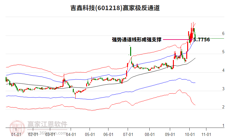 601218吉鑫科技根據(jù)贏家江恩極反通道趨勢(shì)工具展示,上方壓力位5.4953,下方支撐位3.983。601218吉鑫科技處于贏家江恩多頭主線(xiàn)形態(tài),11月18日發(fā)出江恩筑頂信號(hào)后,經(jīng)過(guò)24日,今日再次發(fā)
