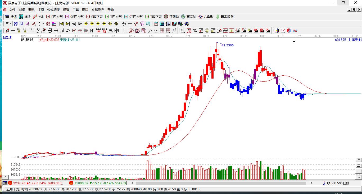 上海電影601595最高價(jià)上穿藍(lán)色外軌線 微漲0.36%