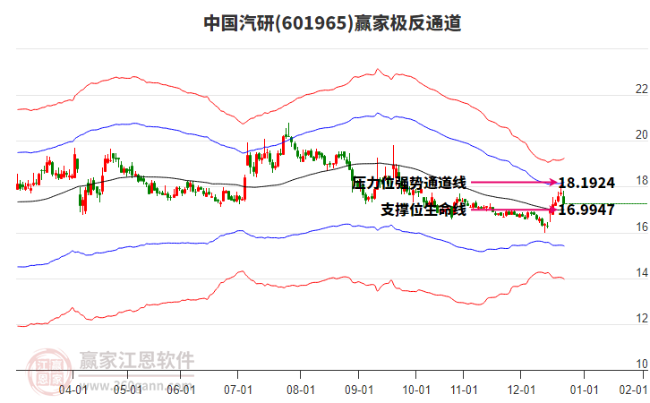 依據(jù)贏家江恩系統(tǒng)趨勢工具極反通道分析判斷中國汽研601965運行在生命線以上強勢區(qū)域,根據(jù)規(guī)則該股可短線、波段結(jié)合操作;結(jié)合物極必反的原理通過分鐘圖做盤中差價,應(yīng)用口訣是:生命線上強勢走,生命線下難抬頭;紅黃兩條外軌線,壓力支撐顯勢頭。