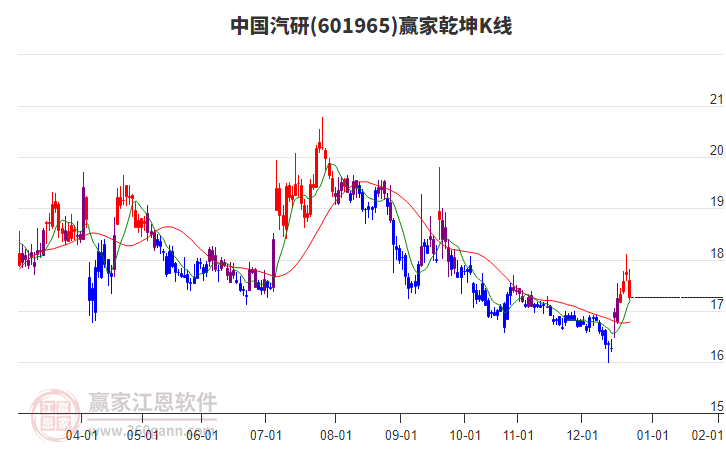 中國汽研(601965)低開收上影陽十字星,距下方16.66元差0.13元