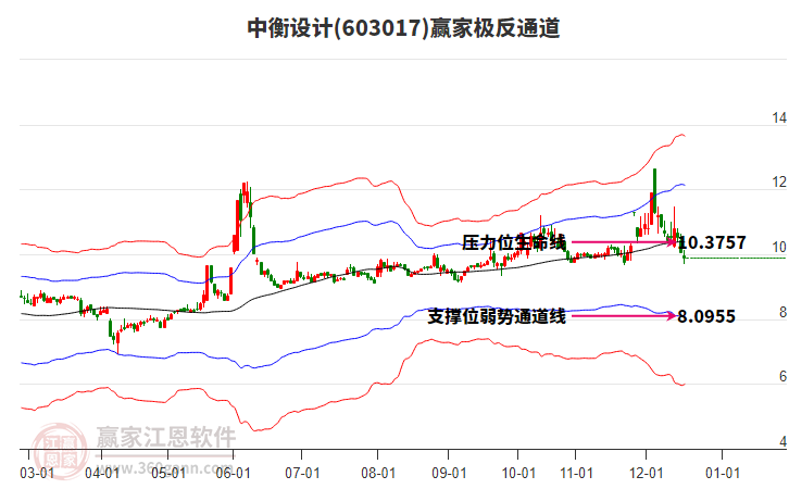603017中衡設(shè)計目前漲停,走出獨立行情。603017中衡設(shè)計截止目前突破極反通道強勢通道線,根據(jù)贏家江恩極反通道趨勢工具展示,上方壓力位13.0107,下方支撐位11.7082。中衡設(shè)計今日跳空高