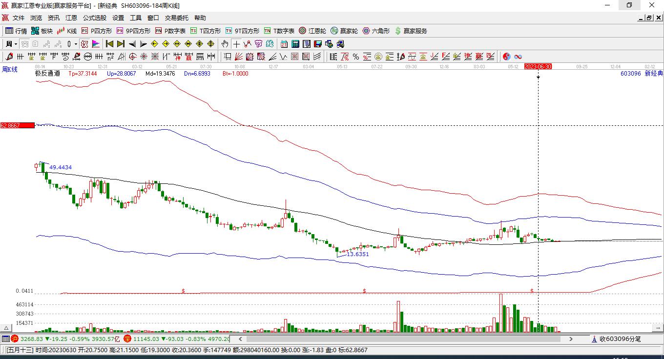 新經(jīng)典處于贏家江恩多頭主線形態(tài),今日重心上移,短期持續(xù)上漲,11月21日發(fā)出中期江恩筑頂信號后,經(jīng)過10日,今日中期形成江恩筑底信號,屬中期多頭預(yù)警,長期處于多頭上漲趨勢。新經(jīng)典根據(jù)贏家江恩極反通道趨