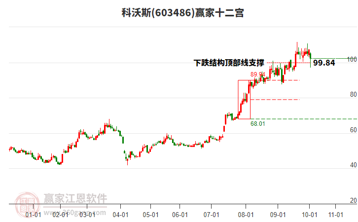 603486科沃斯處于贏家江恩多頭主線形態(tài),從12月1日形成底分型后持續(xù)上攻,今日突破前高形成初次江恩筑底信號,中長期目前都處于回調中??莆炙菇刂聊壳癒線為光腳上影中陽線,它的出現(xiàn)說明上方拋壓較重,股