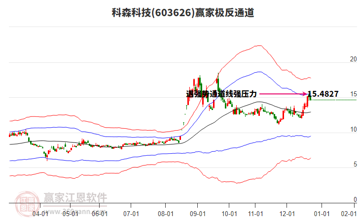 依據贏家江恩系統(tǒng)趨勢工具極反通道分析判斷科森科技603626運行在生命線以下弱勢區(qū)域,根據規(guī)則該股短線輕倉參與,股價跌至弱勢外軌線后波段再結合其它工具信號建倉。應用口訣是:生命線上強勢走,生命線下難抬頭;紅黃兩條外軌線,壓力支撐顯勢頭。