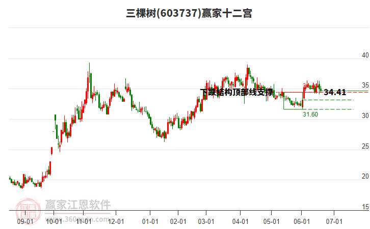 三棵樹(603737)處于贏家江恩多頭中期回調(diào)形態(tài),今日重心持續(xù)下移,短期延續(xù)下跌趨勢,3月17日發(fā)出中期江恩筑底信號后,經(jīng)過219日,今日形成中期筑頂信號,若持續(xù)下跌,觸發(fā)長期筑頂信號,三棵樹(60