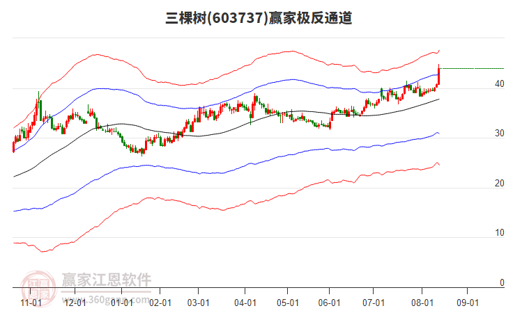 依據(jù)贏家江恩系統(tǒng)趨勢工具極反通道分析判斷三棵樹603737運(yùn)行在生命線以下弱勢區(qū)域,根據(jù)規(guī)則該股短線輕倉參與,股價跌至弱勢外軌線后波段再結(jié)合其它工具信號建倉。應(yīng)用口訣是:生命線上強(qiáng)勢走,生命線下難抬頭;紅黃兩條外軌線,壓力支撐顯勢頭。