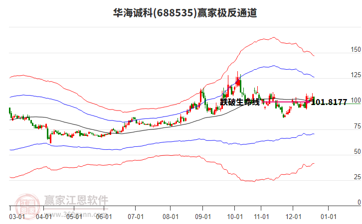 當(dāng)天華海誠(chéng)科最高價(jià)106.5上穿了贏家極反通道工具生命線,受到生命線強(qiáng)力壓制,最終收盤停留在在生命線與藍(lán)色下軌線上方的弱勢(shì)通道區(qū)域。華海誠(chéng)科近10個(gè)交易日漲幅8.35%。